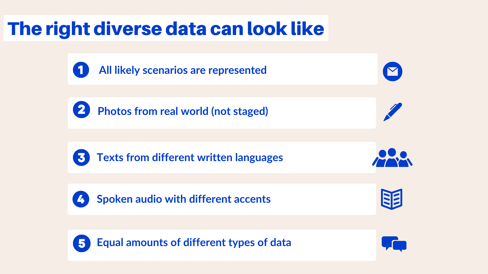 Diverse data is also important to mitigate the bias within your model and product, which is a topic which we will discuss in detail in a later post.